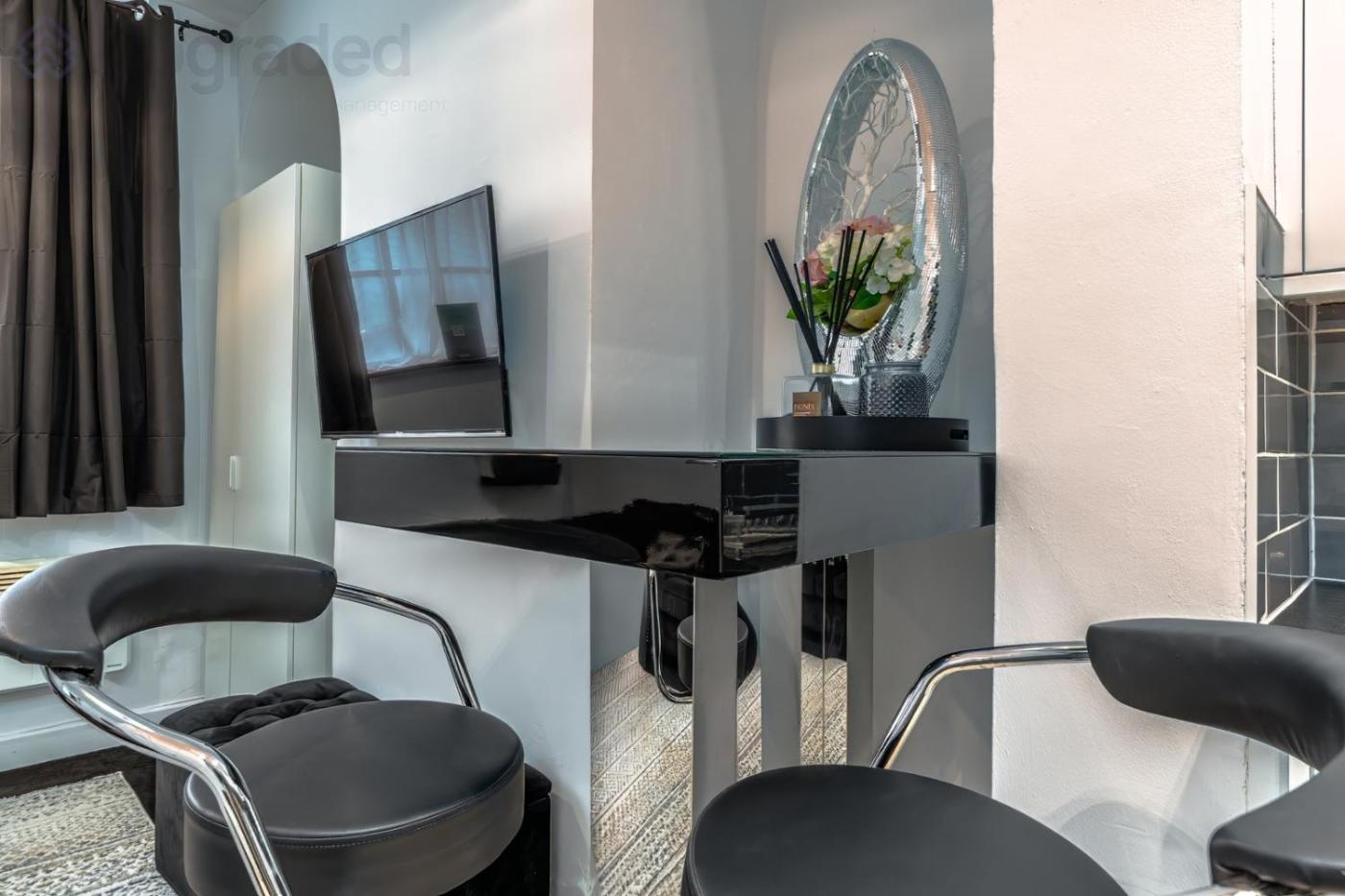 Deluxe One-Bedroom Apartment. Featuring a private entrance, this apartment consists of 1 living room, 1 separate bedroom and 1 bathroom with a shower and a hairdryer. Guests can make meals in the kitchen that is equipped with a stovetop, a refrigerator, an oven and a microwave. This apartment features a washing machine, flat-screen TV, city views, as well as chocolate for guests. The unit offers 1 bed.
