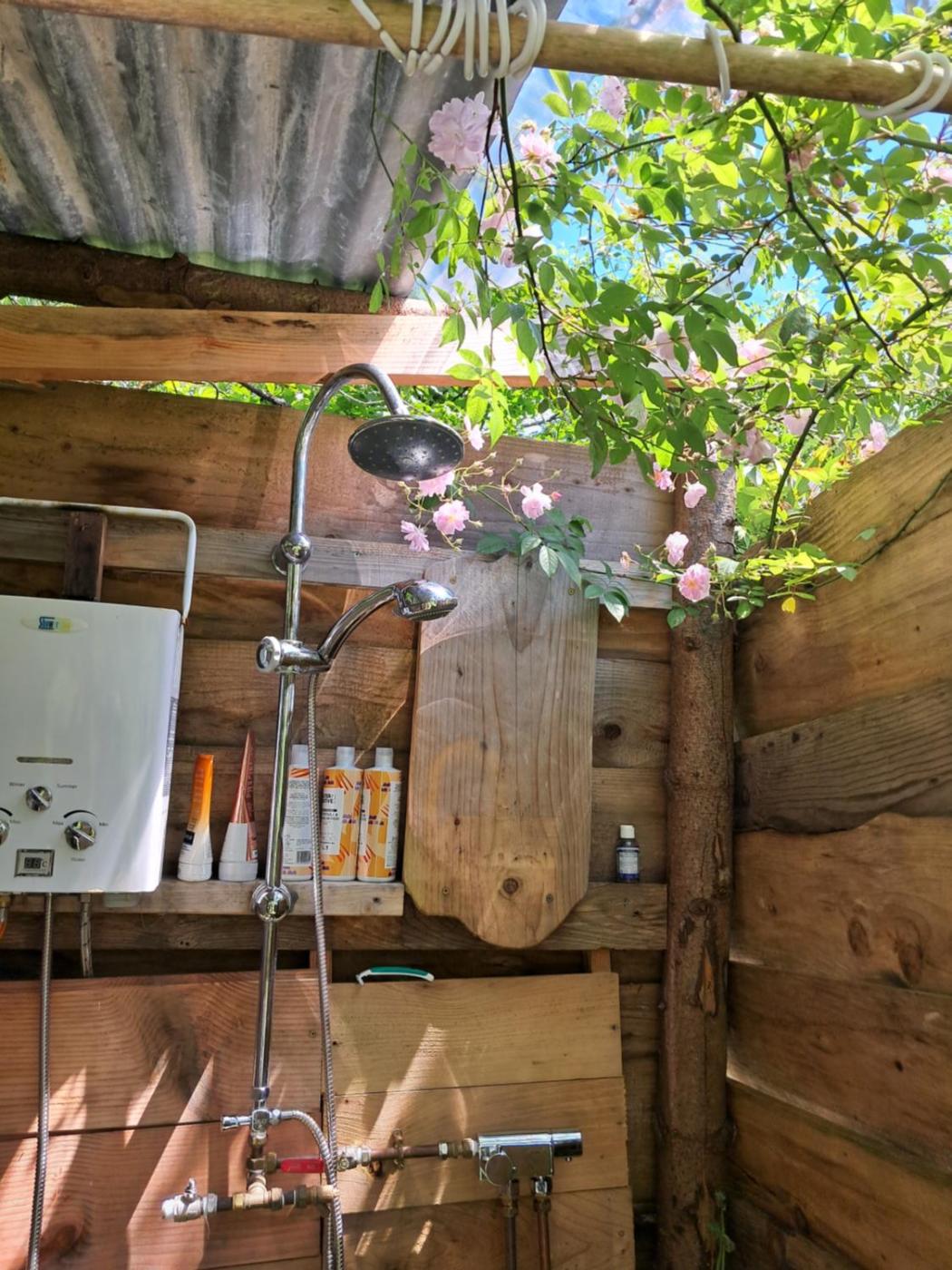 The campground features a sun terrace and an outdoor fireplace.