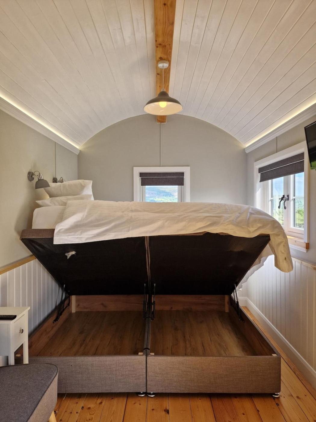 Situated in Tal-y-llyn in the Powys region, Long Meadow Shepherd Hut - Brecon Beacons, LD3 7TD has a patio. The property is around 8.5 km from Brecon Cathedral, 27 km from Clifford Castle and 35 km from Kinnersley Castle. There is an outdoor fireplace and guests can make use of free WiFi and free private parking.