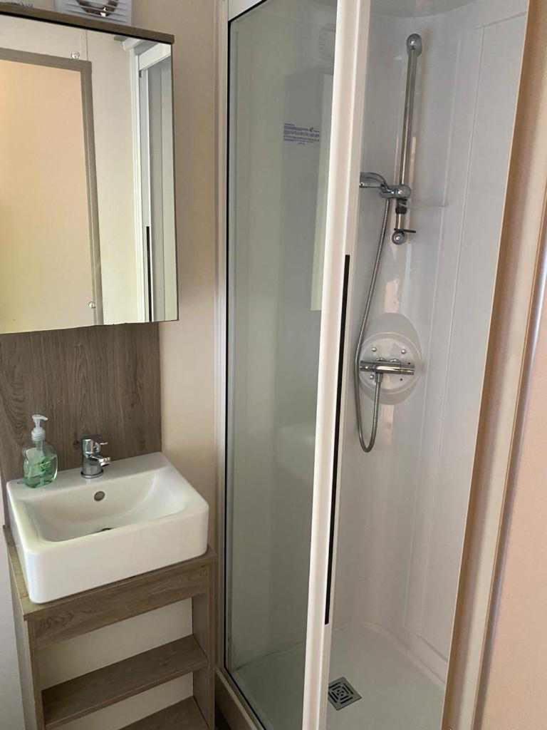 Caravan. This mobile home features a fireplace. This mobile home comprises 1 living room, 2 separate bedrooms and 2 bathrooms with a shower. The well-fitted kitchen features a refrigerator, kitchenware, an oven and a microwave. Featuring a balcony, this mobile home also provides a seating area, a dining area and a flat-screen TV. The unit offers 4 beds.
