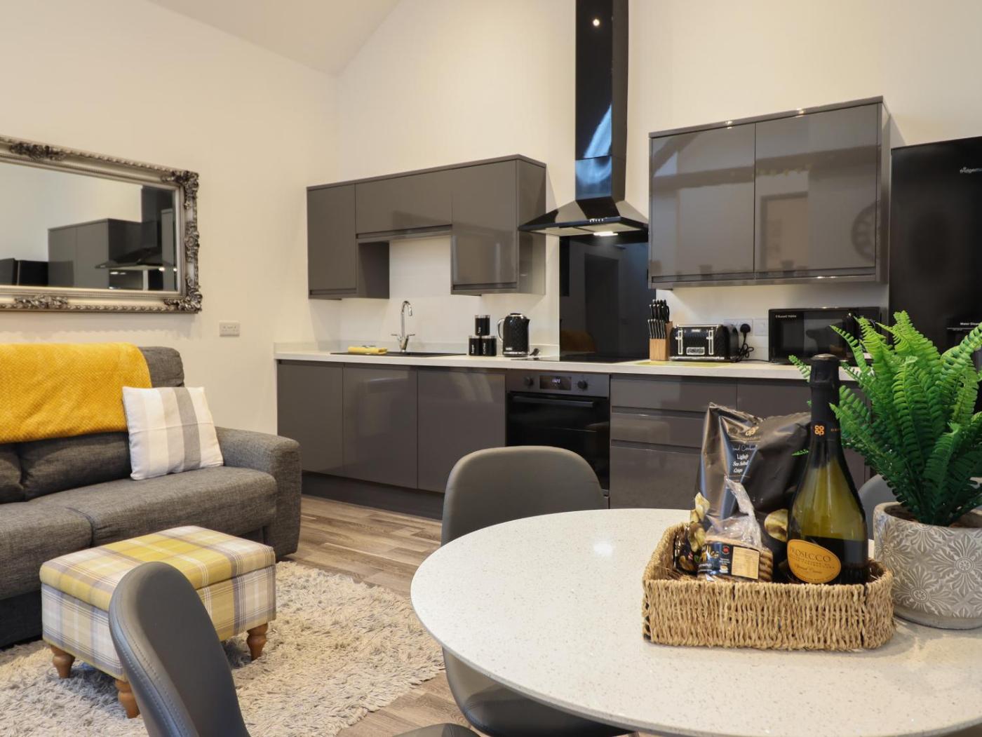 Holiday Home. This holiday homes standout features are the hot tub and fireplace. This holiday home includes 1 bedroom, a seating area with a sofa and 1 bathroom with a walk-in shower. In the fully equipped kitchen, guests will find a stovetop, a refrigerator, a dishwasher and an oven. The holiday home offers a washing machine, a dining area, a wardrobe, an electric kettle and a TV. The unit has 1 bed.